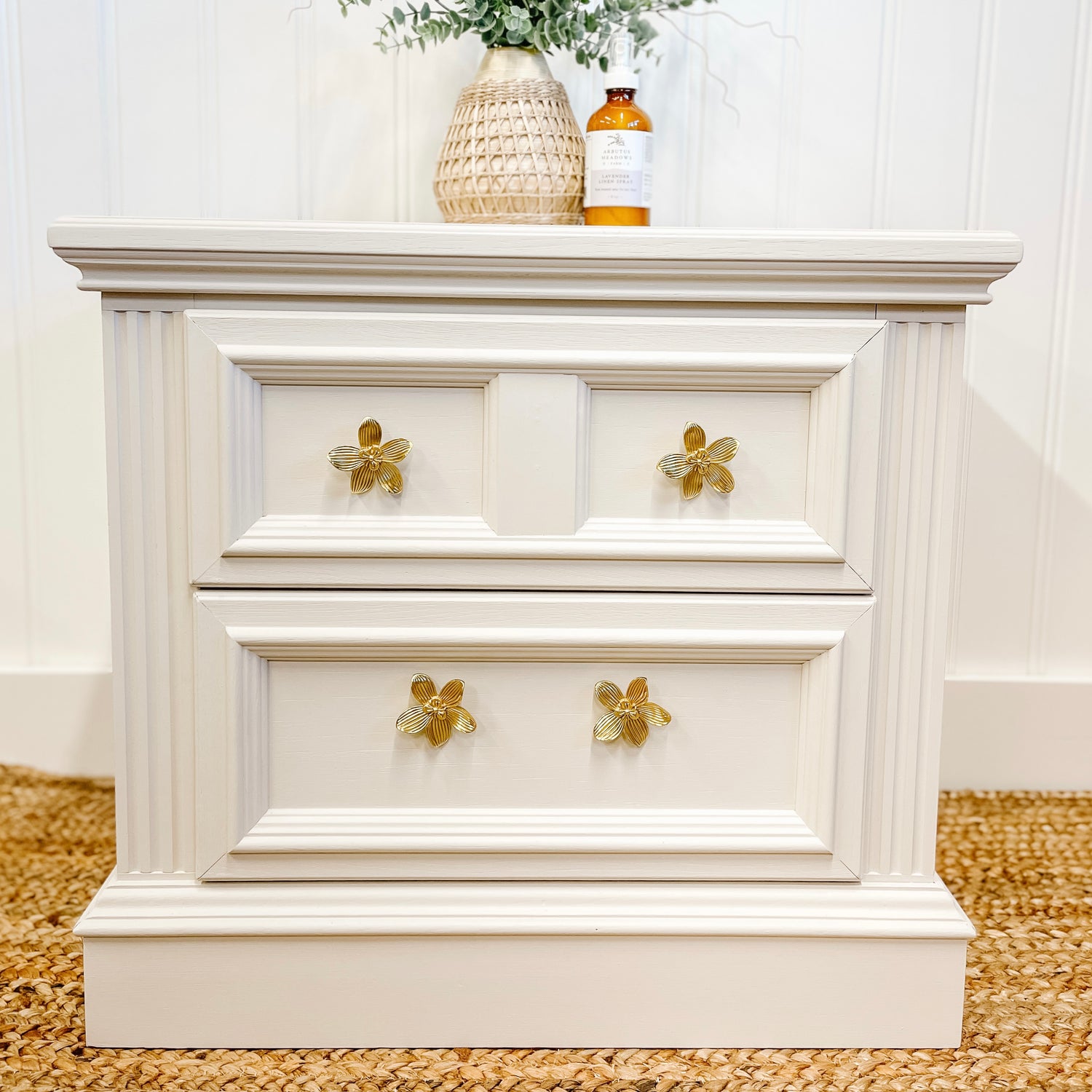 This solid wood 2 drawer piece has been lovingly re-imagined using (3) coats of Cashmere by Fusion Mineral Paint ..