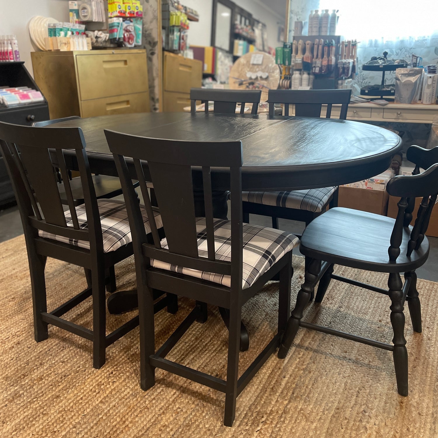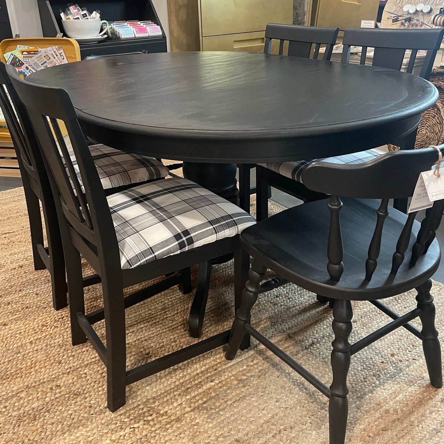 These solid wood chairs have been carefully hand painted using Fusion Mineral Paint in Coal Black …