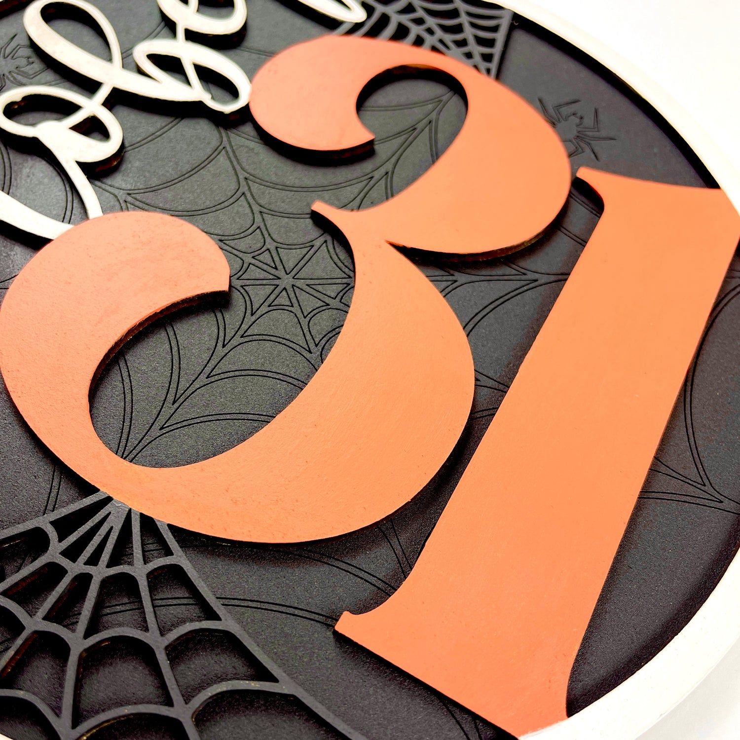 This October 31 piece is a 9" round, is laser cut from 1/4" MDF and comes unfinished ... all the supplies you need to complete this at home are included in your kit !!