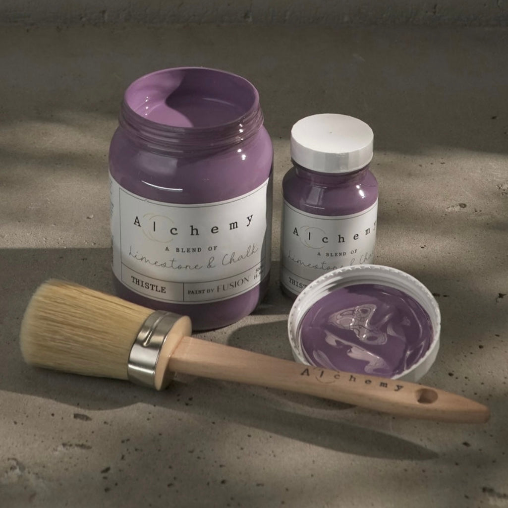 Alchemy by Fusion is a fusion of the best elements of Fusion Mineral Paint and Milk Paint, crafted with a unique blend of acrylic, limestone, and chalk. This carefully developed formula offers the flexibility of a chalk-style finish, while maintaining enhanced durability compared to traditional chalk paints on the market.
