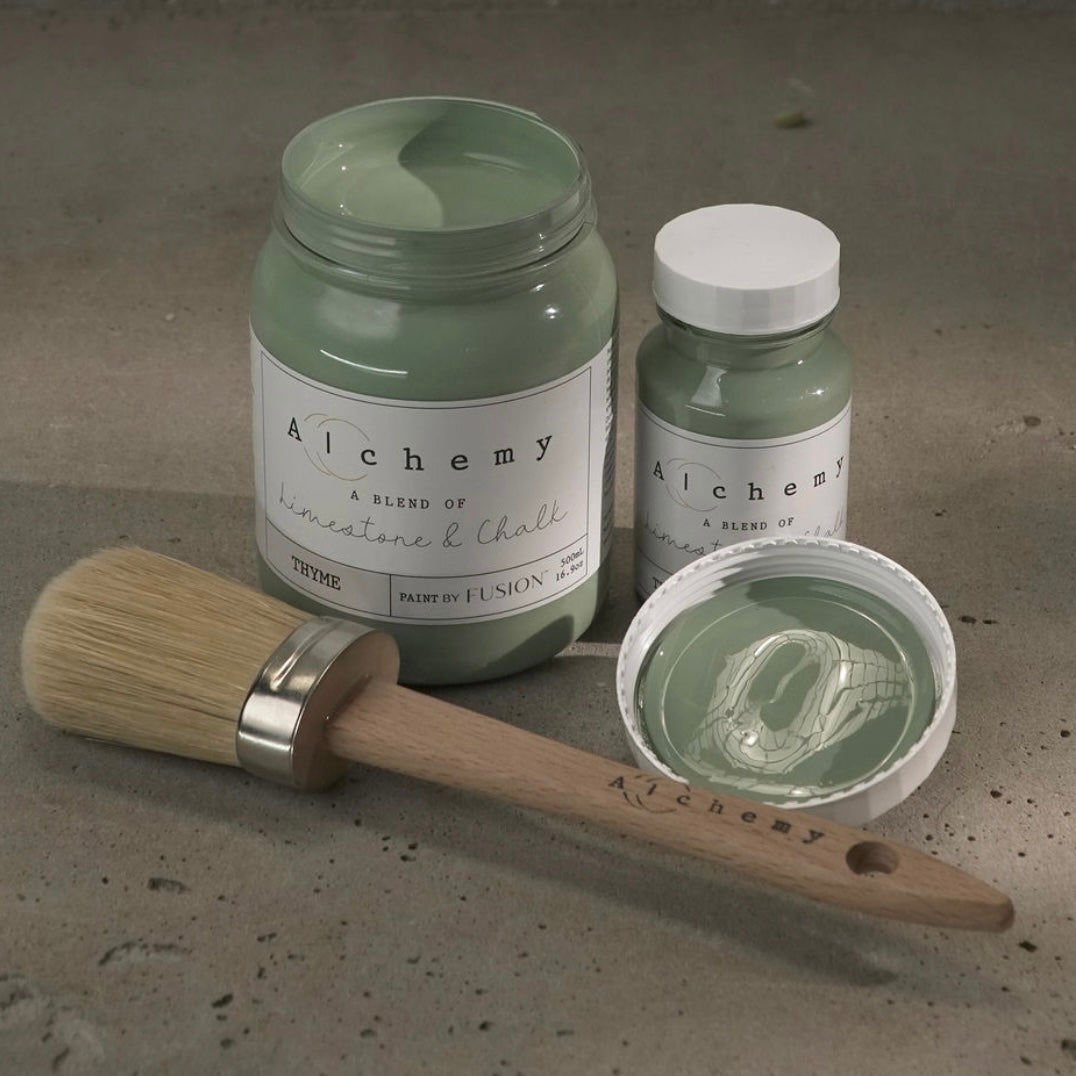 Alchemy by Fusion is a fusion of the best elements of Fusion Mineral Paint and Milk Paint, crafted with a unique blend of acrylic, limestone, and chalk. This carefully developed formula offers the flexibility of a chalk-style finish, while maintaining enhanced durability compared to traditional chalk paints on the market.