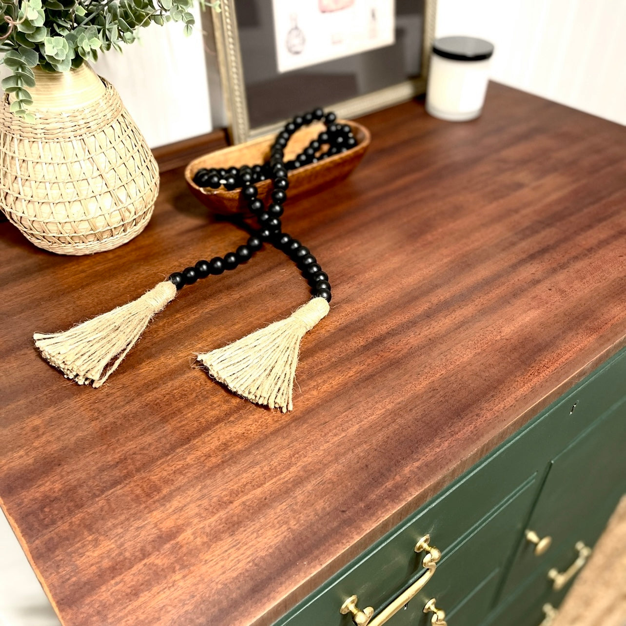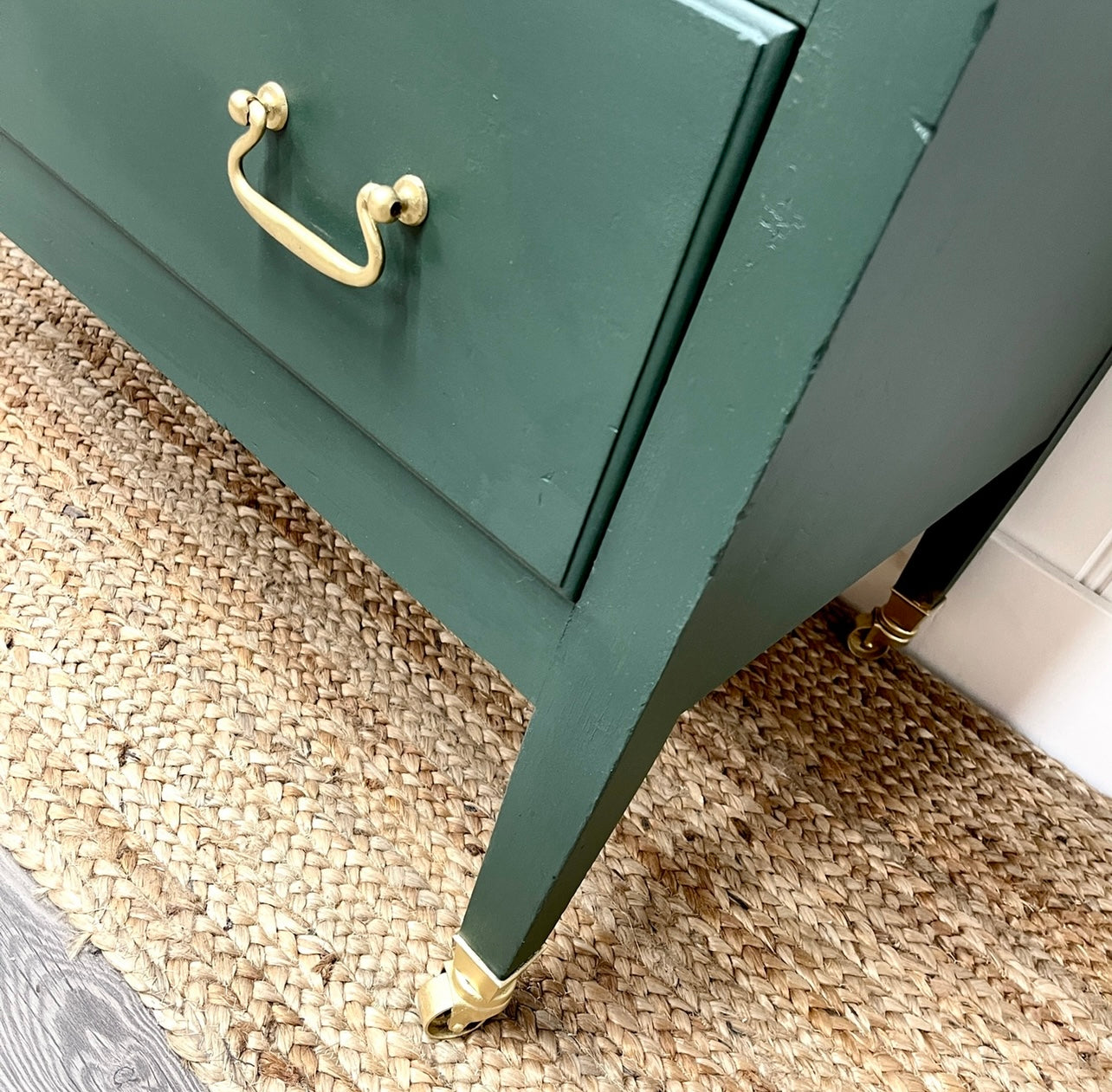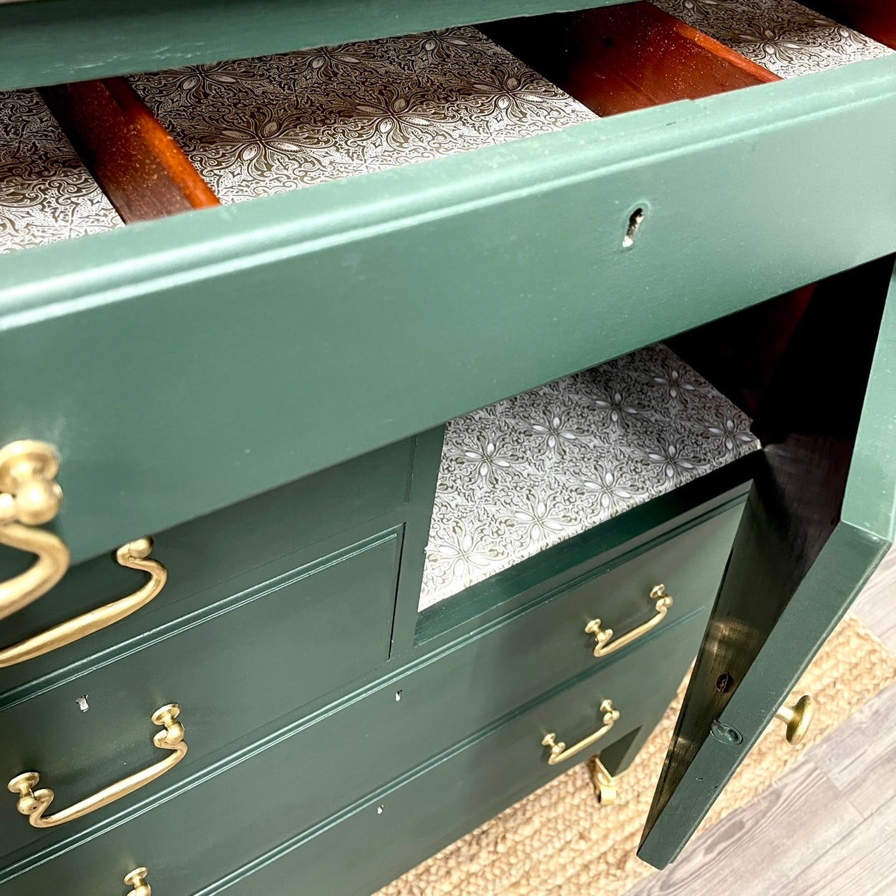 As always, it was cleaned inside and out using TSP Alternative before adding coat of primer to seal it … she was the. painted with both a Staalmeester brush and roller using (2) coats of Fusion Mineral Paint in Manor Green.