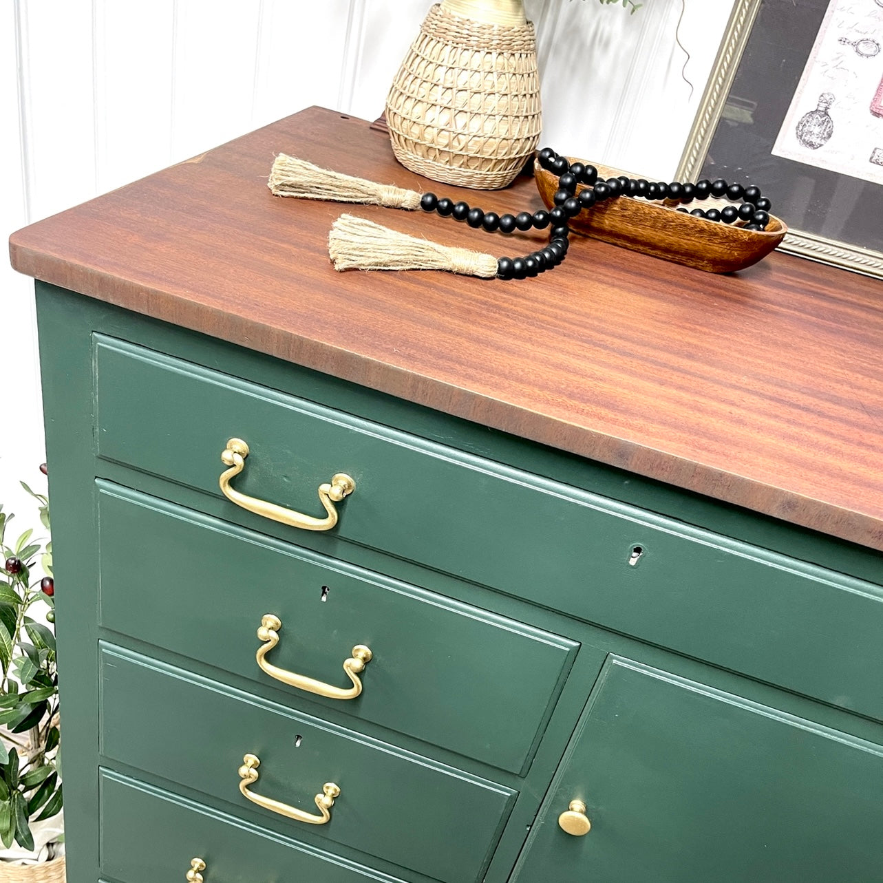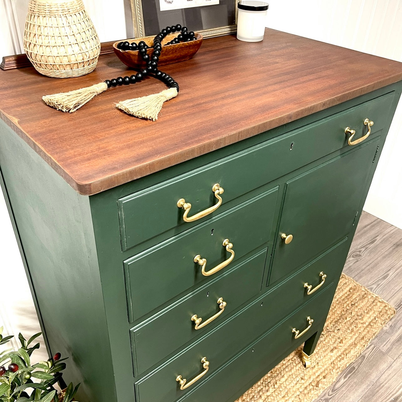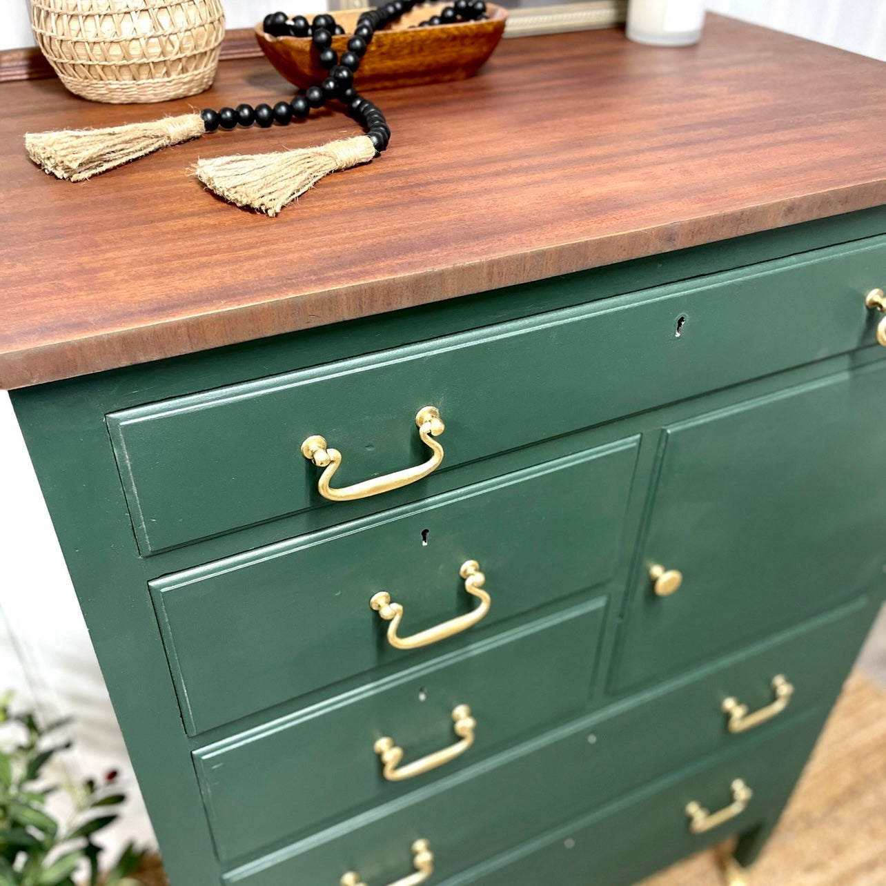 A coat of Clear Furniture Wax was added prior to putting the cleaned and painted original hardware back on to this gorgeous piece !