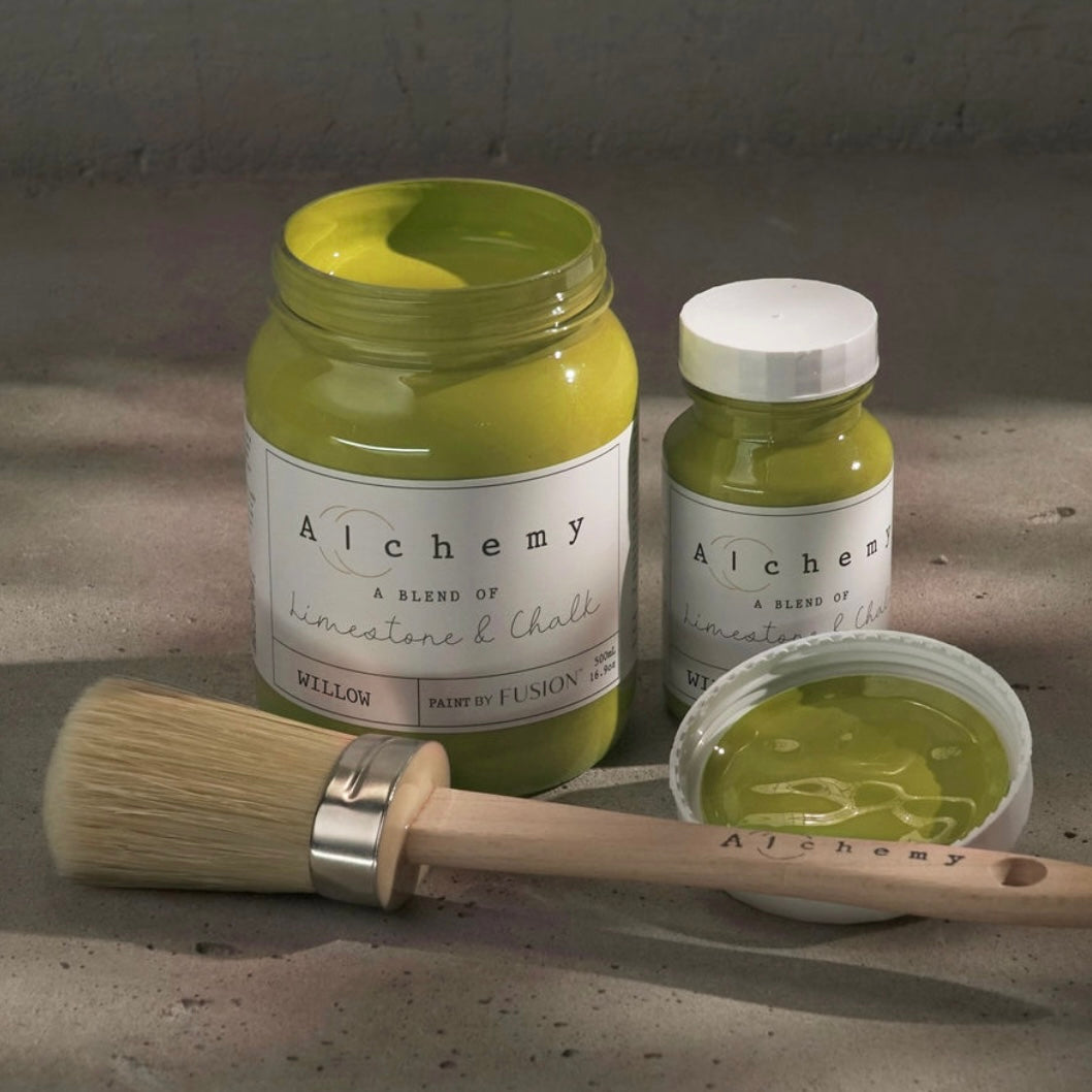 Alchemy by Fusion is a fusion of the best elements of Fusion Mineral Paint and Milk Paint, crafted with a unique blend of acrylic, limestone, and chalk. This carefully developed formula offers the flexibility of a chalk-style finish, while maintaining enhanced durability compared to traditional chalk paints on the market.